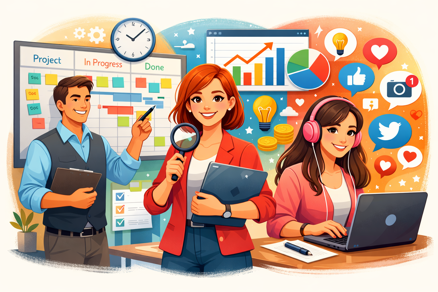 Création de contenus, compréhension des cibles et communication d'entreprises qui ne sont pas innées à la communication.