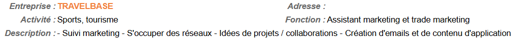 J'ai également appris à gérer un portefeuille clients important et découvert des notions de stratification stratégique grâce à Grégory. J'ai approfondi ma compréhension du marché du voyage et fait mes premiers pas en trade marketing à travers des collaborations avec Pernod Ricard, John Martin et Beaumanoir.