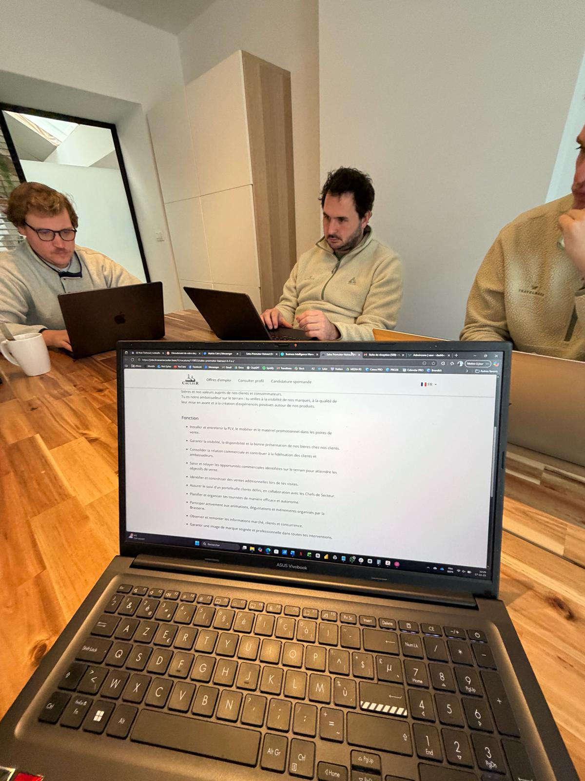 Je me suis rapidement intégré grâce à Nicolas, mon maître de stage, Grégory, mon co-maître de stage, et Benjamin. Leur disponibilité et leur confiance ont créé un environnement de travail serein, où j'ai pu rapidement être autonome et créatif. Cette ambiance m'a donné une vraie liberté dans mes tâches et m'a permis de contribuer activement aux projets de Proride.